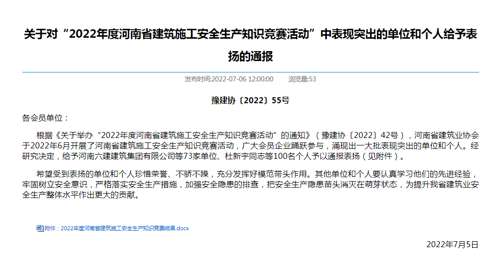 【查看詳情】安全生產(chǎn)是一個(gè)企業(yè)的生命線,也是一個(gè)永恒的話題。多年來(lái),河南五建第二建筑安裝有限公司始終堅(jiān)持安全第一、預(yù)防為主、綜合治理的安全方